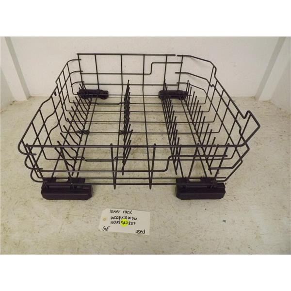 Used GE dishwasher lower rack in good condition. May contain small amounts of rust and/or chips.