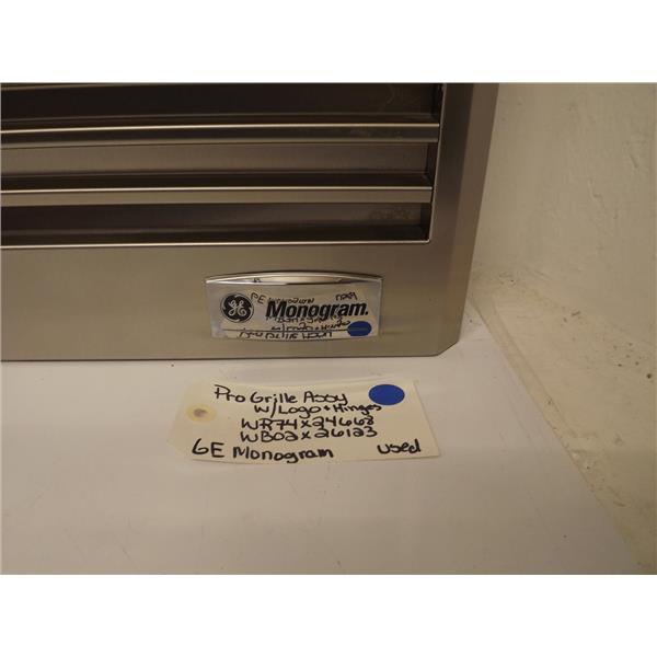 GE Refrigerator WR74X24668 WB02X26123 Pro Grill Assy w/Logo & Hinges Used