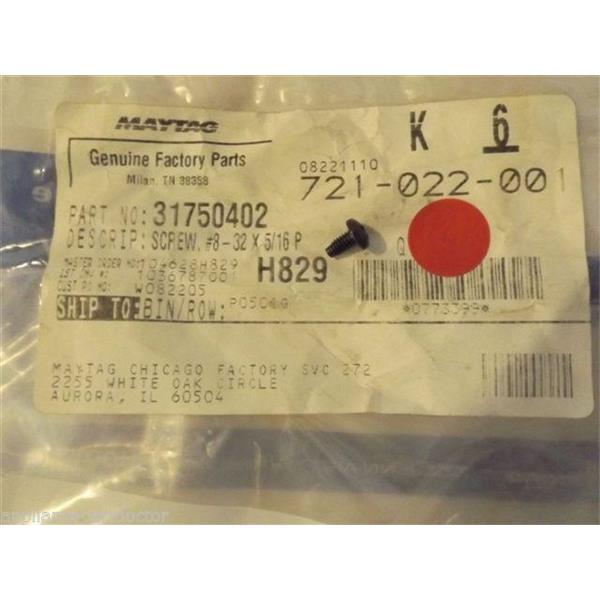 JENN AIR AMANA MAYTAG STOVE 31750402 Screw, No.8-32 X 5/16 Pph (blk) NEW IN BAG
