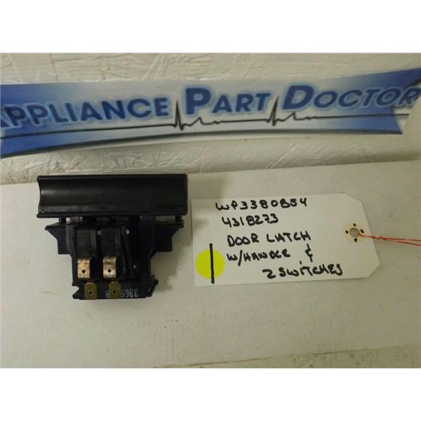 KENMORE WHIRLPOOL DISHWASHER WP3380854 4318273 DOOR LATCH W/HANDLE & 2 SWITCHES USED