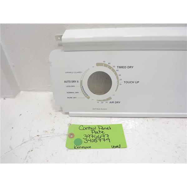 Kenmore Dryer 3976677 3405779 Control Panel Plate Used