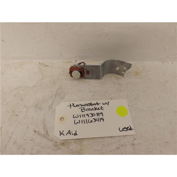 KitchenAid Dishwasher W11193089 W11163419 Thermostat w/ Bracket Used