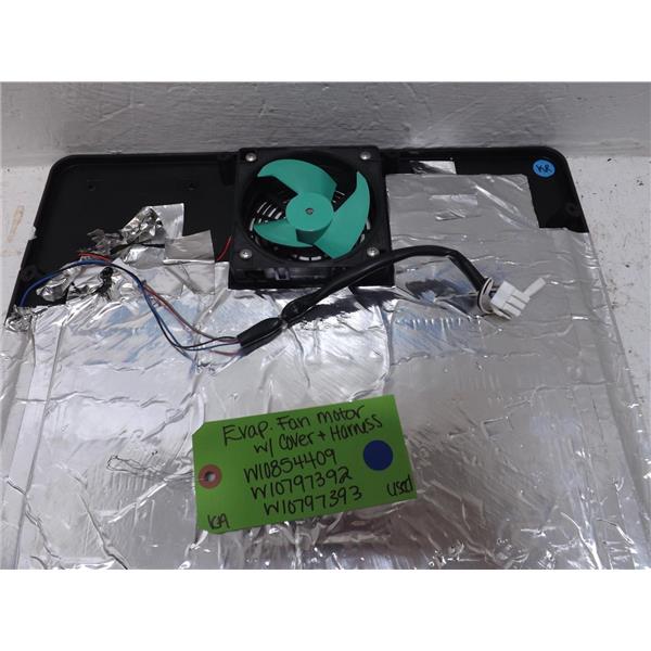 KitchenAid Refrigerator W10854409 W10797392 W10797393 Evap. Fan Motor w/ Cover & Harness Used