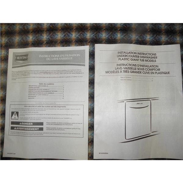 MAYTAG DISHWASHER W10435039A W10240116A INSTRUCTION INSTALL MANUAL USED PART