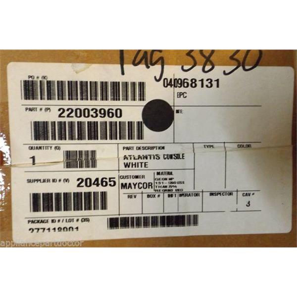 MAYTAG WASHER 22003960 ATLANTIS CONSOLE WHITE WHT. NEW IN BOX