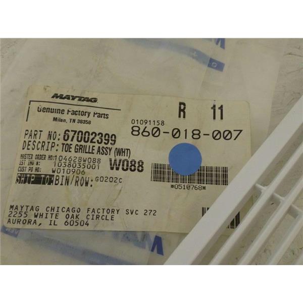 MAYTAG WHIRLPOOL RERFRIGERATOR 67002399 TOE GRILLE ASSY NEW