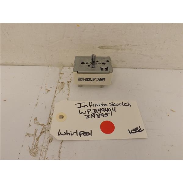 Used Whirlpool Range Infinite Switch in Good Condition.  May Contain Scratches and/or Scuffs.