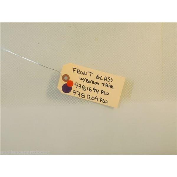 WHIRLPOOL STOVE 9781694PW 9781209PW Glass, Door Front (white) W/BOTTOM TRIM used