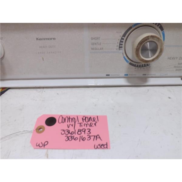 Whirlpool Washer 3361893 3361637A Control Panel w/ Timer Used