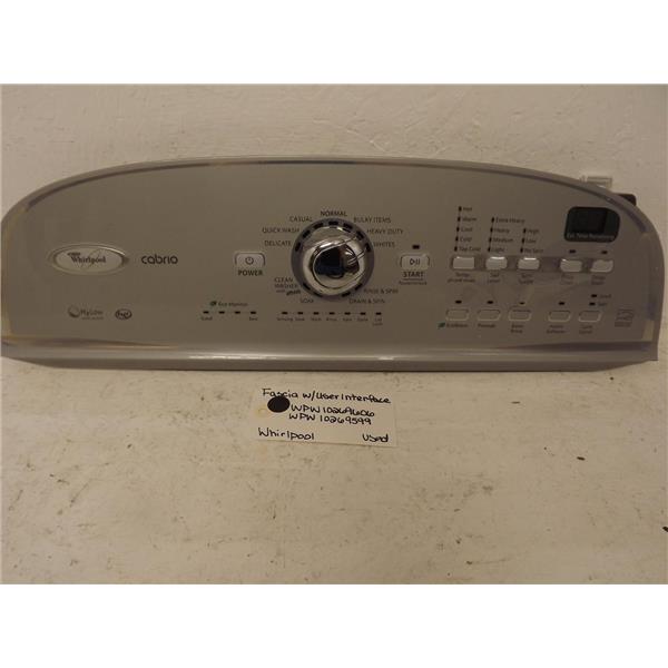 Whirlpool Washer WPW10269606 WPW10269599 Fascia w/User Interface Used